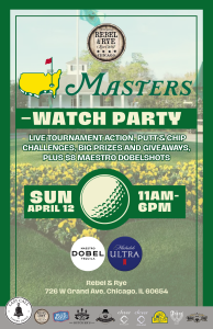 Spend your Sunday at Rebel & Rye for a full day of Masters Tournament action. We’re bringing the greens to River West with live coverage, interactive games, and plenty of chances to win while you sip and watch the biggest names in golf chase the jacket.