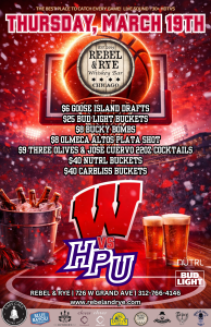 March Madness takes over Rebel & Rye as the Wisconsin Badgers face High Point in a tournament matchup you won’t want to miss. Catch every play with live sound and 30+ HDTVs, surrounded by fellow fans and a packed game-day atmosphere in River West.